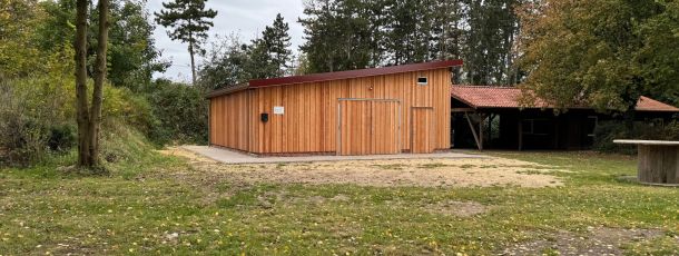 Zusätzlich kann im neuen Gebäude die komplette Ausstattung des Vereins untergebracht werden, sodass größere Arbeitsgeräte wie der Aufsitzrasenmäher oder der PKW-Anhänger nicht mehr beim Bauhof der Stadt oder privat untergebracht werden müssen, sondern dort Platz finden. Dies ist eine Erleichterung, da der häufige, teils private Transport der Arbeitsgeräte mit Anhängern entfällt.