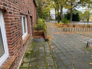 Das Gelände und die vorhandene Pflasterung waren sehr uneben. Die Bücherei war nur über Treppen zu erreichen. Damit war der Zugang aller Flächen für Personen mit Einschränkungen sehr schlecht oder nicht möglich.