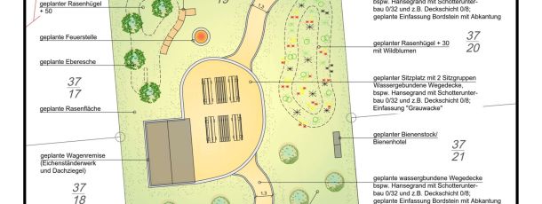 Es sollen durch umfangreiche Begrünungsmaßnahmen (Gehölze, Hecken, Blühwiesen, Obstbäume, Bienenhotel) neue innerörtliche Oasen geschaffen werden. Sitzbänke und die Wagenremise laden zum Verweilen ein. Ergänzt werden die Bereiche durch eine Pergola (Burgstraße) sowie durch Sandsteinblöcke, eine Feuerstelle und ein Bienenhotel (Am Busch).