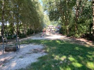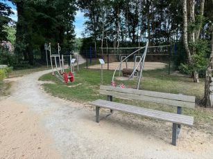 Dabei wurden Kleinkinderbereiche und Verweilmöglichkeiten für Aufsichtspersonen ebenso ergänzt, wie für die älteste Nutzerschicht, die Senioren, ein neues Bewegungsangebot mit Fitness- und Koordinationsgeräten. Vorhandene Spielgeräte wurden in das Gesamtkonzept eingefügt. So verfügt der erneuerte Spielplatz zukünftig über generationsübergreifende Freizeitangebote.