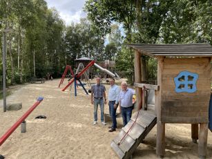 Dabei wurden Kleinkinderbereiche und Verweilmöglichkeiten für Aufsichtspersonen ebenso ergänzt, wie für die älteste Nutzerschicht, die Senioren, ein neues Bewegungsangebot mit Fitness- und Koordinationsgeräten. Vorhandene Spielgeräte wurden in das Gesamtkonzept eingefügt. So verfügt der erneuerte Spielplatz zukünftig über generationsübergreifende Freizeitangebote.