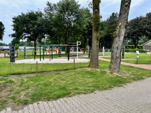 Weitere Spiel- und Bewegungsgeräte wie eine größere Turmkombination, ein Netzsteg, eine Dreier-Surpriseballanlage, eine Wippe u.a. erweitern das Spielangebot im Mehrgenerationenpark und stehen auch den Schülern der Grundschule zur Verfügung. Am Zugang zur Schule ist eine befestigte Fläche geschaffen worden; hier wurden die vorhandene Tischtennisplatte und vorhandene Bänke neu platziert.