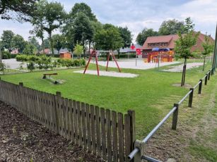Um eine hohe Akzeptanz und Erreichbarkeit der Fläche zu erzielen, verläuft nun ein Fußweg aus Richtung Wehmer Straße in nördlicher Richtung zum Friedhof über die Spielplatzfläche. Diese wichtige Wegebeziehung wird von vielen Dorfbewohnern genutzt. Somit wurde die Möglichkeit geschaffen, über die Spielfläche auch den Friedhof bequem und barrierefrei zu erreichen.