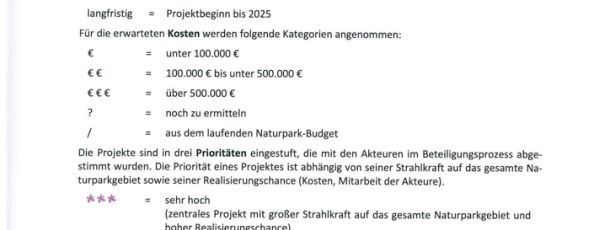 Naturparkpläne haben keine planrechtliche Verbindlichkeit, sondern stellen lediglich eine freiwillige Selbstbindung in Form eines „Masterplanes Naturpark“ dar. Hervorzuheben ist, dass der einmal aufgestellte Naturparkplan insbesondere mit Blick auf die Projektplanung permanent weiterzuentwickeln ist, damit er auch auf lange Sicht die Funktion einer Leitlinie für die Akteure im Naturparkgebiet übernehmen kann.