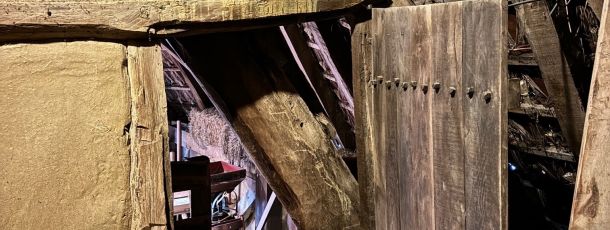- Erneuerung einer Gebäudestütze und eines Rähmbalkens der Außenwand zum Wasserrad hin